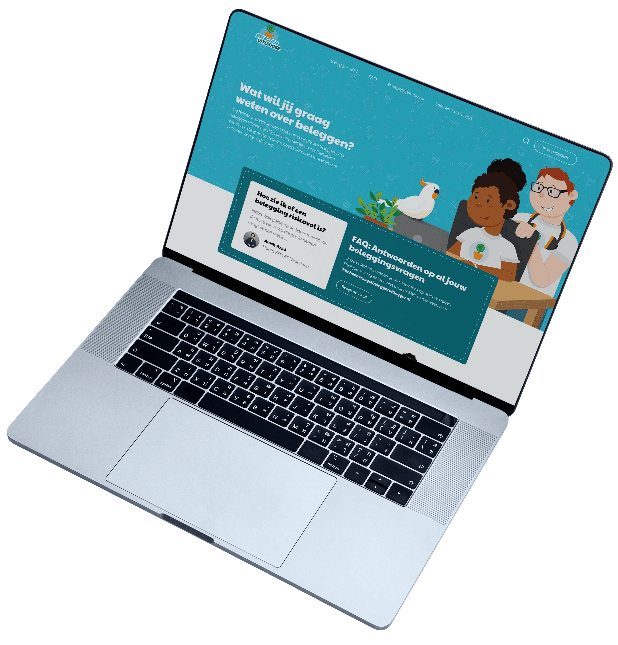 dat jongeren alles leert over alle positieve -en negatieve aspecten over beleggen, sparen en omgaan met geld. Dit doen zij door lesmaterialen te ontwikkelen voor op middelbare scholen, in te zetten op social media en het aanbieden van relevante en actuele informatie.
